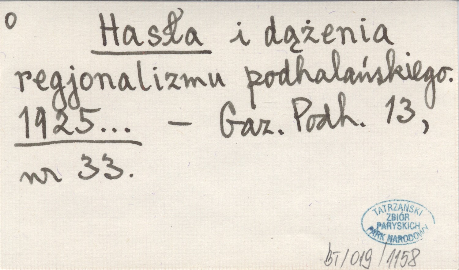 Hasła i dążenia regjonalizmu podhalańskiego. 1925...