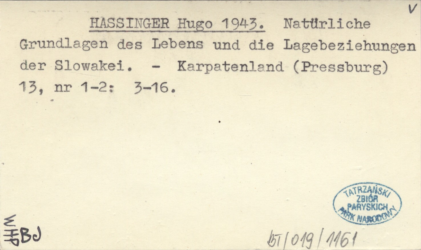HASSINGER Hugo 1943 Natürliche Grundlagen des Lebens und die Lagebeziehungen der Slowake.