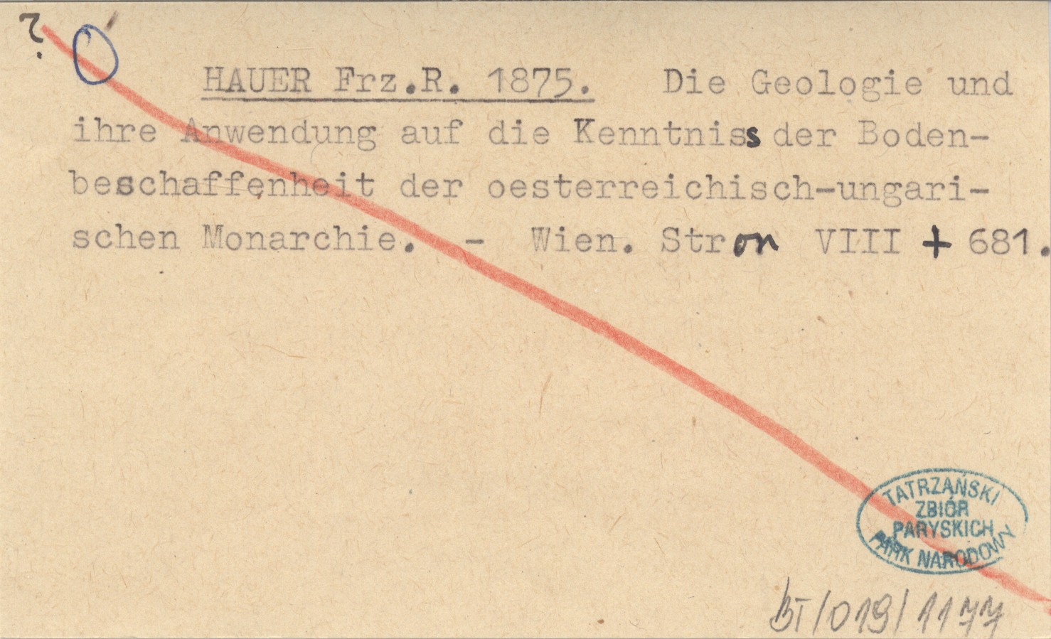 HAUER Frz. R. 1875 Die Geologie und ihre Anwendung auf die Kenntniss der Bodenbeschaffenheit der oesterreichisch-ungarischen Monarchie.
