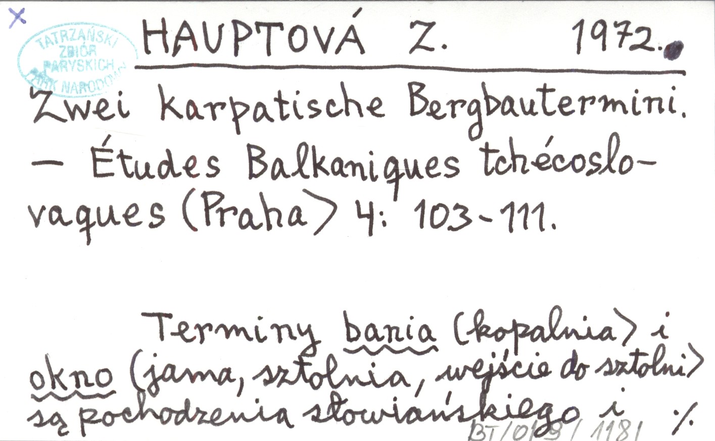 Études Balkaniques tchécoslovaques (Praha) , 4: 103-111. Terminy bania (kopalnia) i okno (jama, sztolnia, wejście do sztolni) są pochodzenia słowiańskiego i zostały przejęte do węgierskiego i rumuńskiego języka.