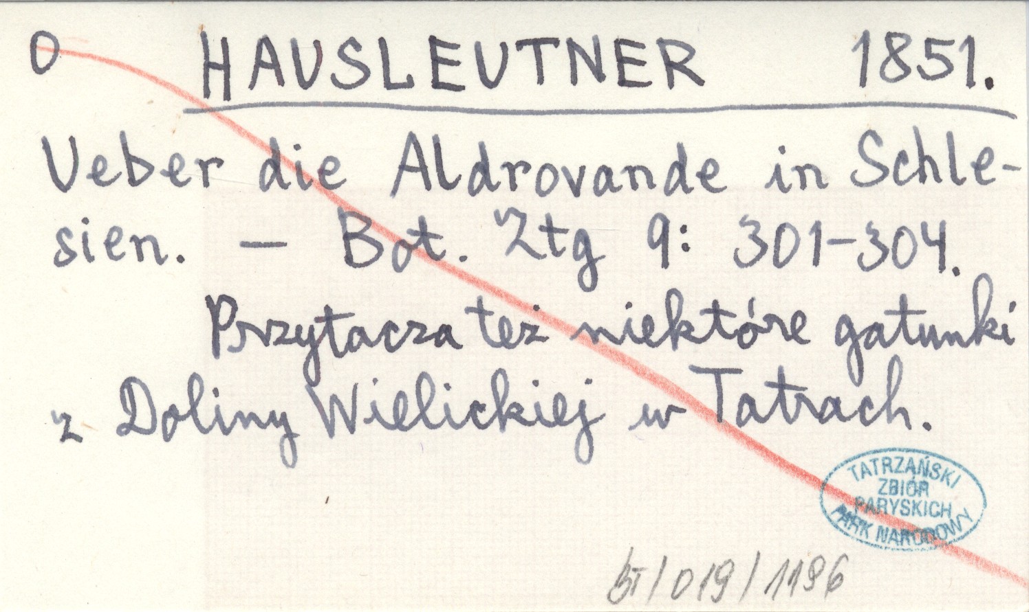HAUSLEUTNER 1851 Ueber die Aldrovande in Schlesien.