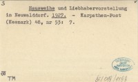 Hausweihe und Liebhabervorstellung in Neuwalddorf. 1927