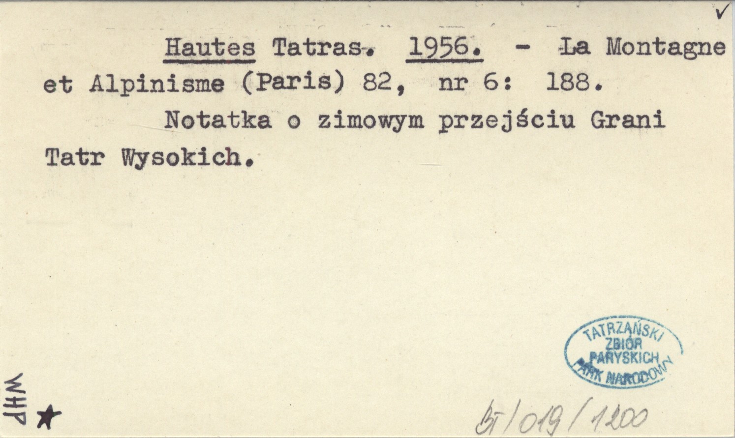 La Montagne et Alpinisme (Paris) , 82, nr 6: 188. Notatka o zimowym przejściu Grani Tatr Wysokich.