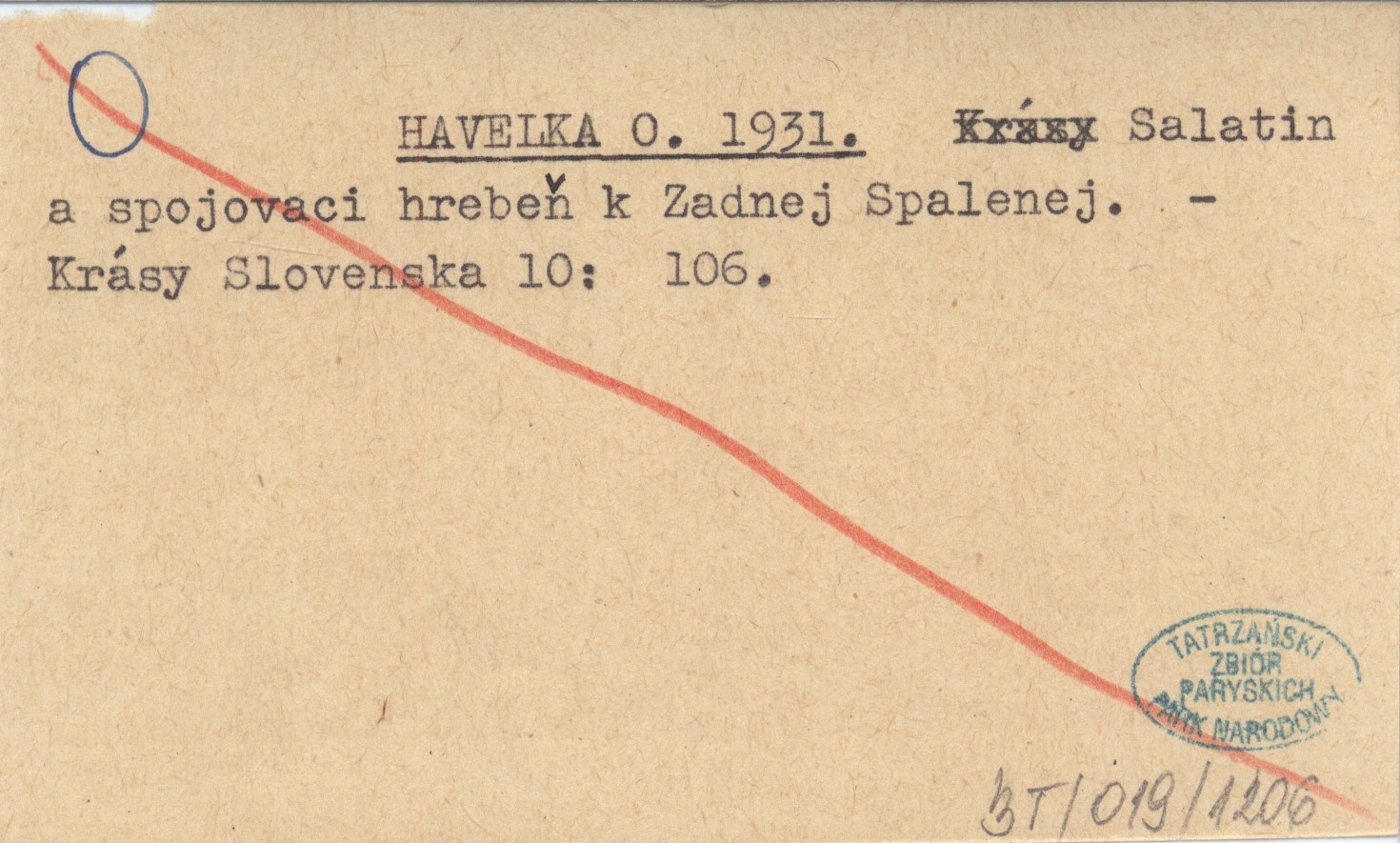 HAVELKA O. 1931 Salatin a spojovaci hrebeň k Zadnej Spalenej.