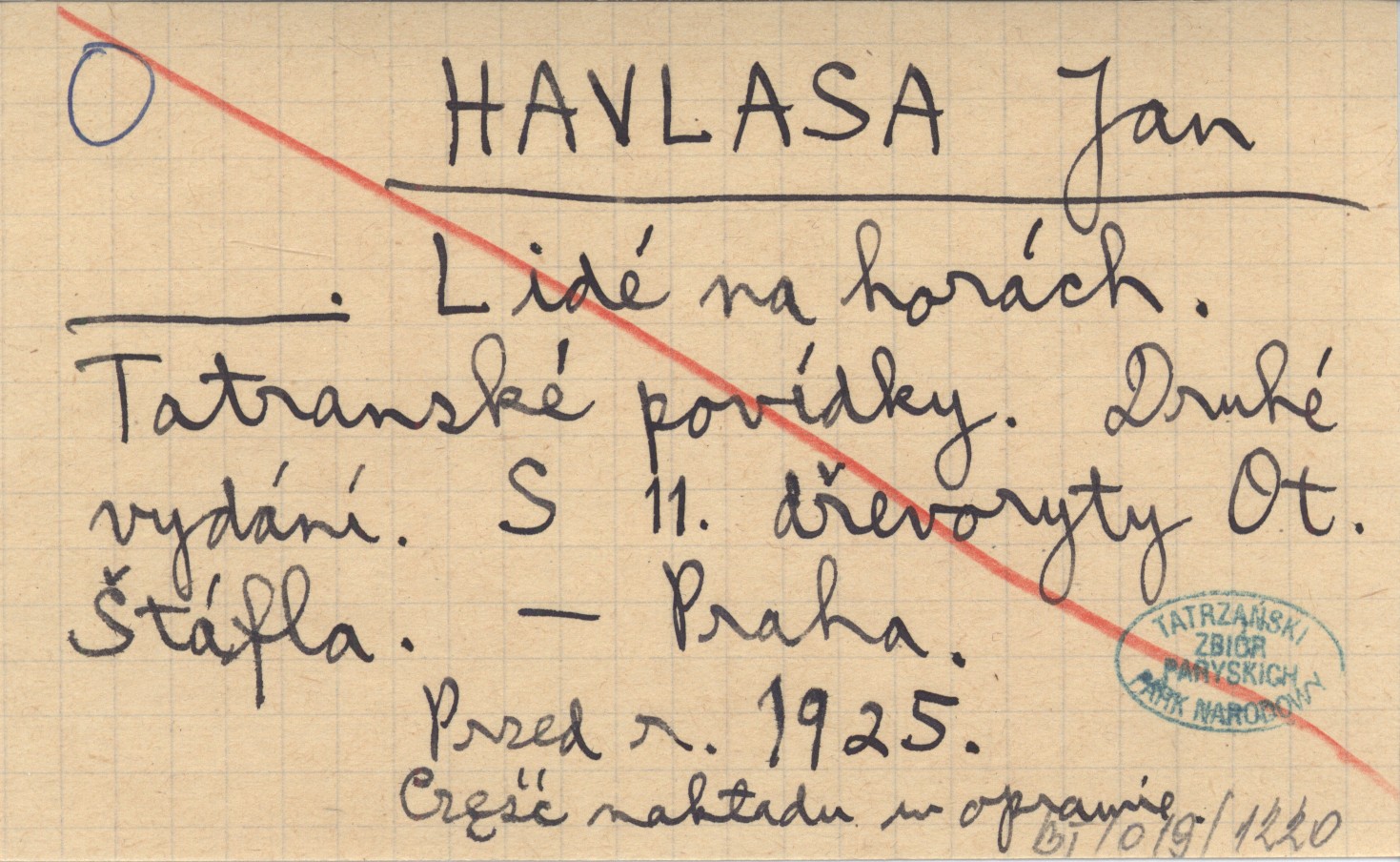 HAVLASA Jan Lidé na horách. Tatranské povídky. Druhé vydání. S 11. dřevoryty Ot. Štáfla.