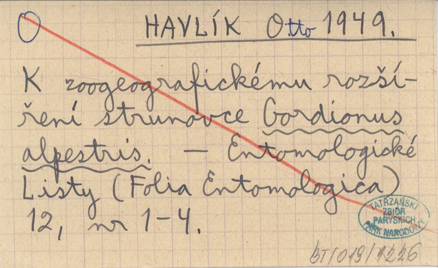 HAVLÍK Otto 1949 K zoogeografickému rozšíření strunovce Gordionus alpestris.