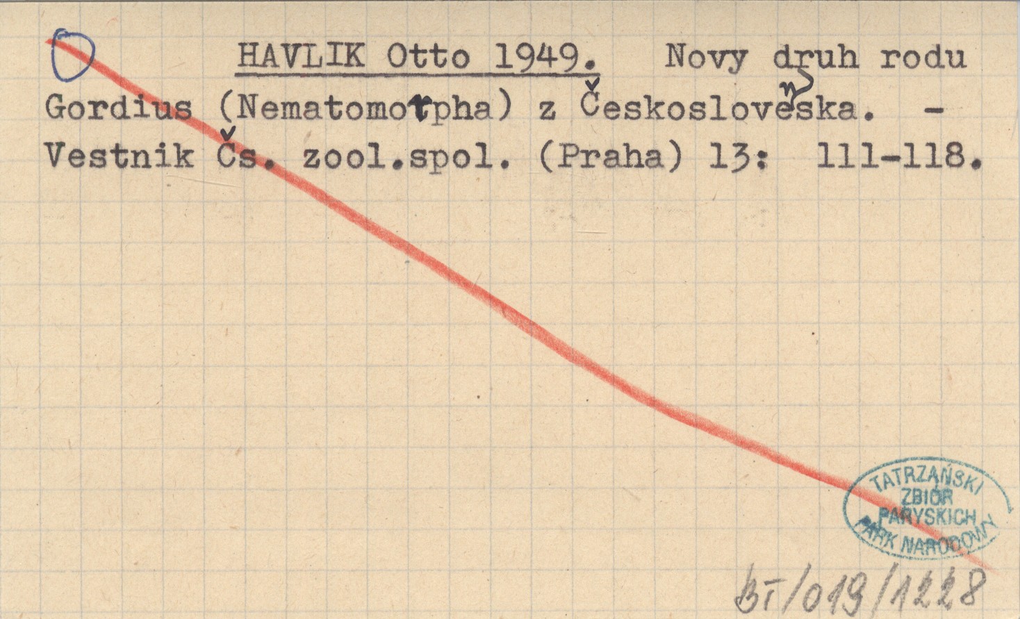 HAVLIK Otto 1949 Novy druh rodu Gordius (Nematomorpha) z Československa.
