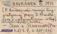 HAVRÁNEK B. 1941 [O konieczno¶ci rewizji lingwistycznej pracy D. Krandľalova o wpływach rum. w Karp.]. [W zwi±zku z rec. pracy V. Davídka].