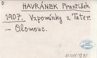 HAVRÁNEK Frantiąek 1907 Vzpomínky z Tater.