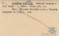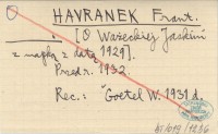 HAVRANEK Frant. [O Ważeckiej Jaskini z mapką z datą 1929].