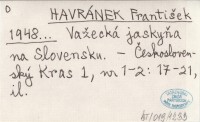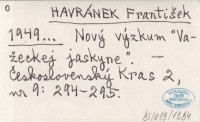 HAVRÁNEK František 1949... Nový výzkum "Važeckej jaskyne".