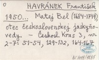 HAVRÁNEK František 1950... Matej Bel (1684-1749), otec československej jaskyňovedy.