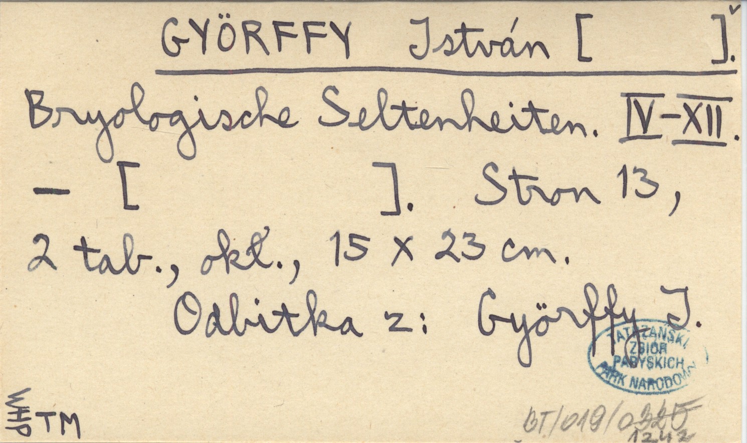 , 13 s., 2 k., okł., 15x23 cm. Odbitka z: Győrffy I.