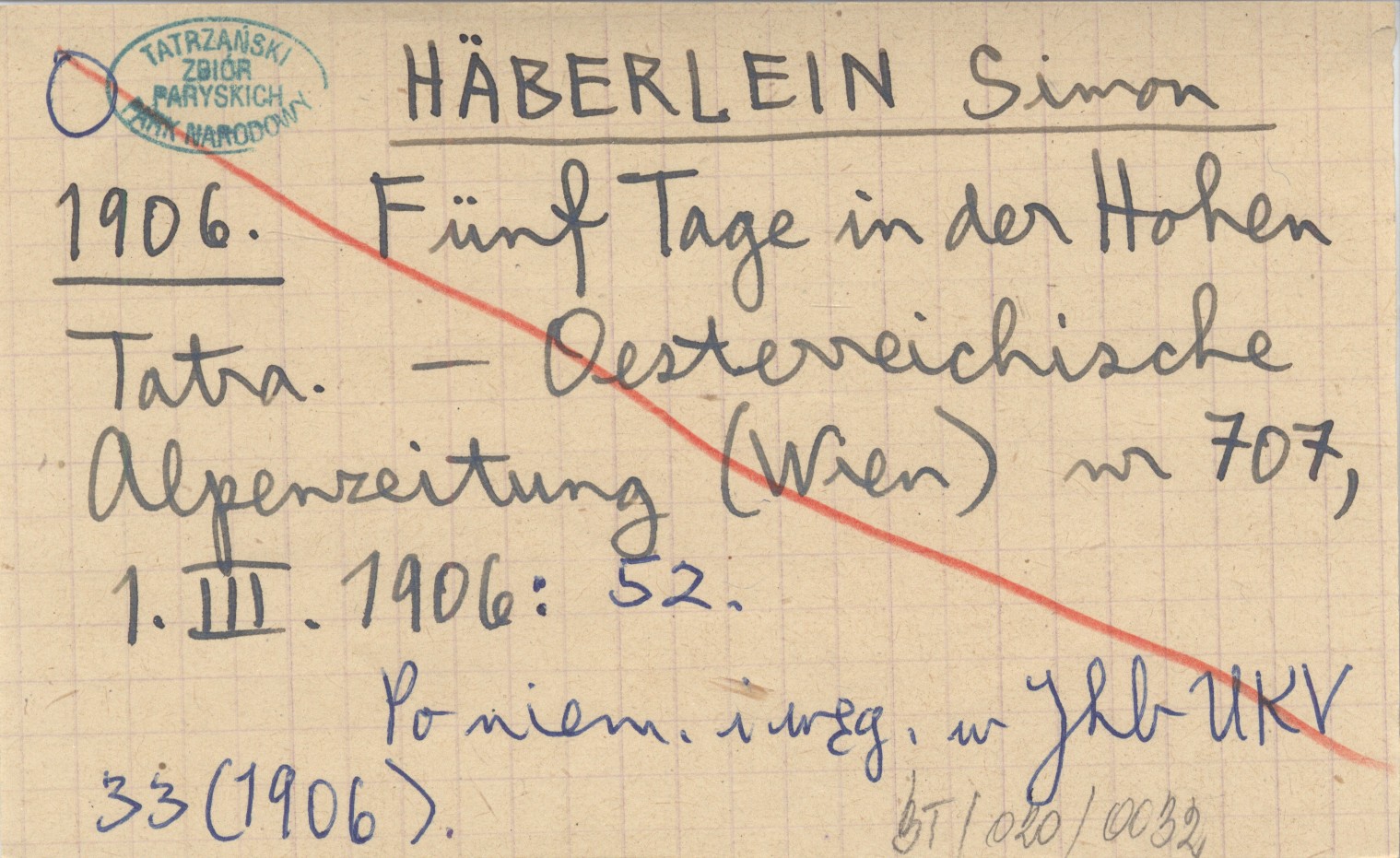 Oesterreichische Alpenzeitung (Wien) , Nr 707, 1.III.1906: 52. Po niemiecku i węgiersku w Jhb UKV 33 (1906).