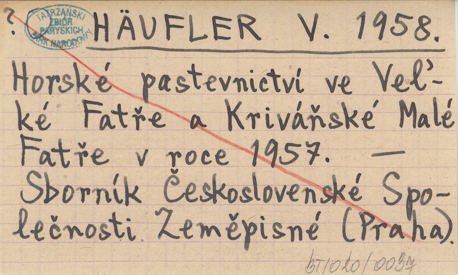 HÄUFLER V. 1958 Horské pastevnictví ve Veµké Fatře a Kriváňské Malé Fatře v roce 1957.
