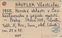 HÄUFLER Vlastislav 1955 Horské oblasti v Československu a jejich vyuľití.