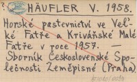 HÄUFLER V. 1958 Horské pastevnictví ve Veµké Fatře a Kriváňské Malé Fatře v roce 1957.