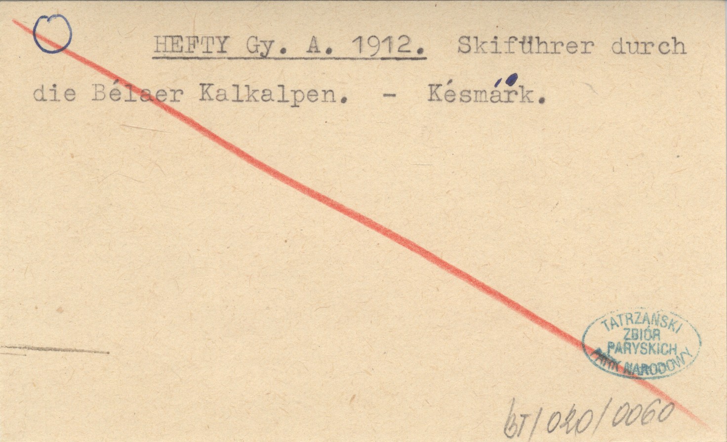 HEFTY Gy. A. 1912 Skiführer durch die Bélaer Kalkaplen.