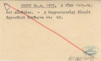 HEFTY Gy. A. 1917 A TÖMB 1915-16, évi működése.
