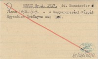 HEFTY Gy. A. 1917 id. Hunsdorfer János 1850-1917.