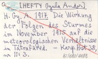 H. Gy. A. [HEFTY Gyula Andor] 1917 Die Wirkung der Folgen des Sturmes im November 1915 aud die meteorologischen Verhältnisse in Tátrafüred.