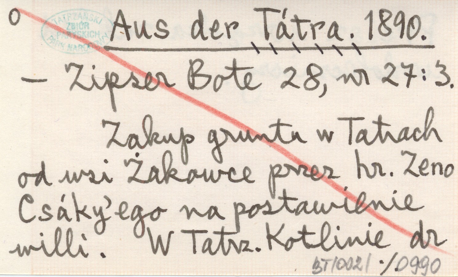 Zipser Bote, 28, nr 27: 3. Zakup gruntu w Tatrach od wsi Żakowce przez hr. Zeno Csáky'ego na postawienie willi. W Tatrz. Kotlinie dr Preisz urządza zakład wodoleczniczy.
