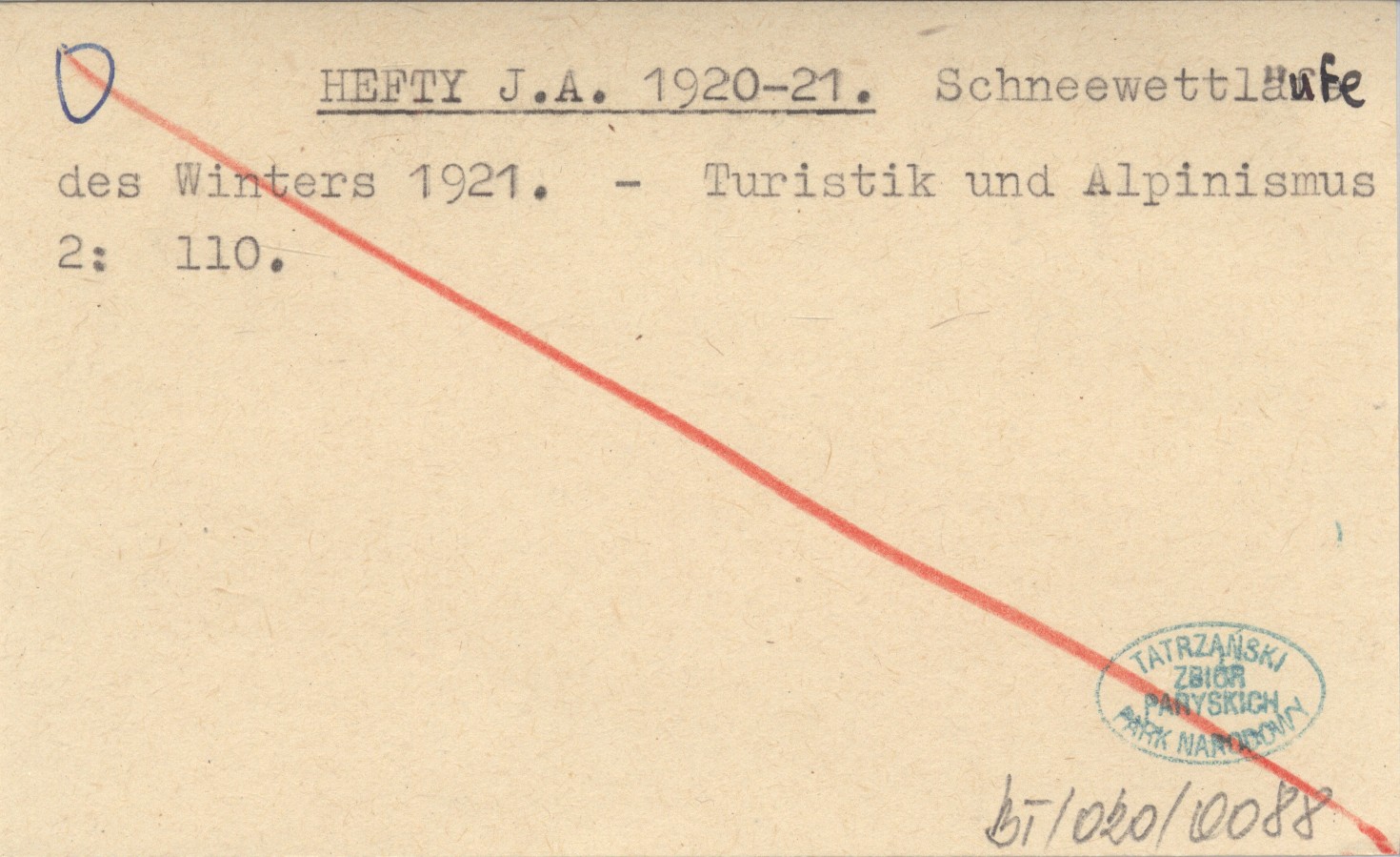 HEFTY J. A. 1920-21 Schneewettläufe des Winters 1921.