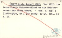 [HEFTY Gyula Andor] 1922 Der VIII. internationale Schneewettlauf um die Meisterschaft der Hohen Tatra.