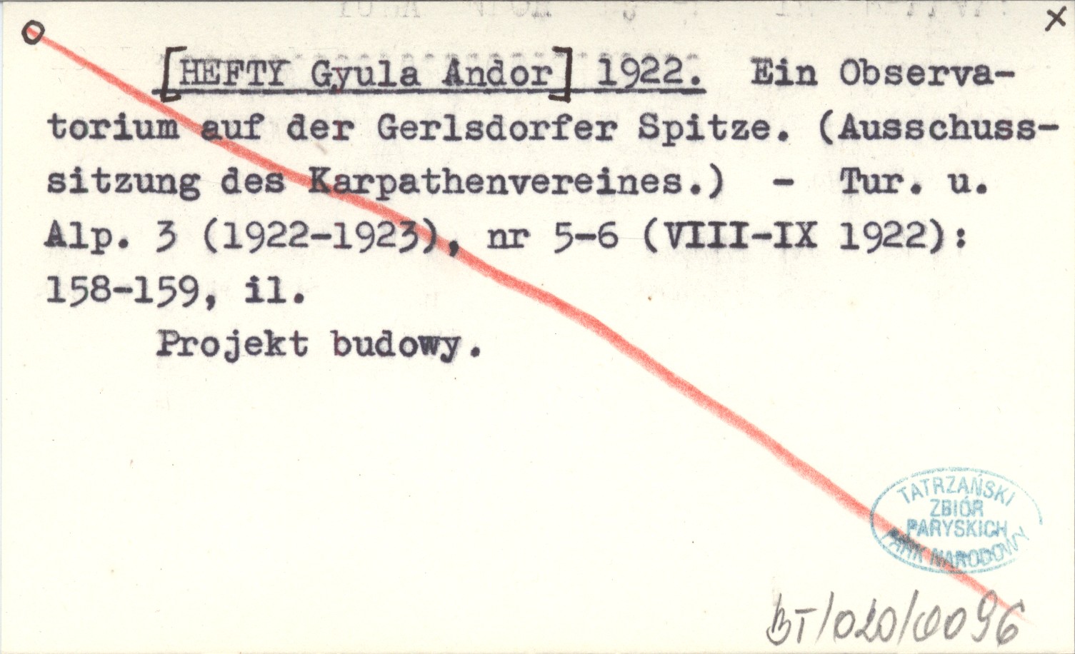 [HEFTY Gyula Andor] 1922 Ein Observatorium auf der Gerlsdorfer Spitze. (Ausschusssitzung des Karpathenvereines).