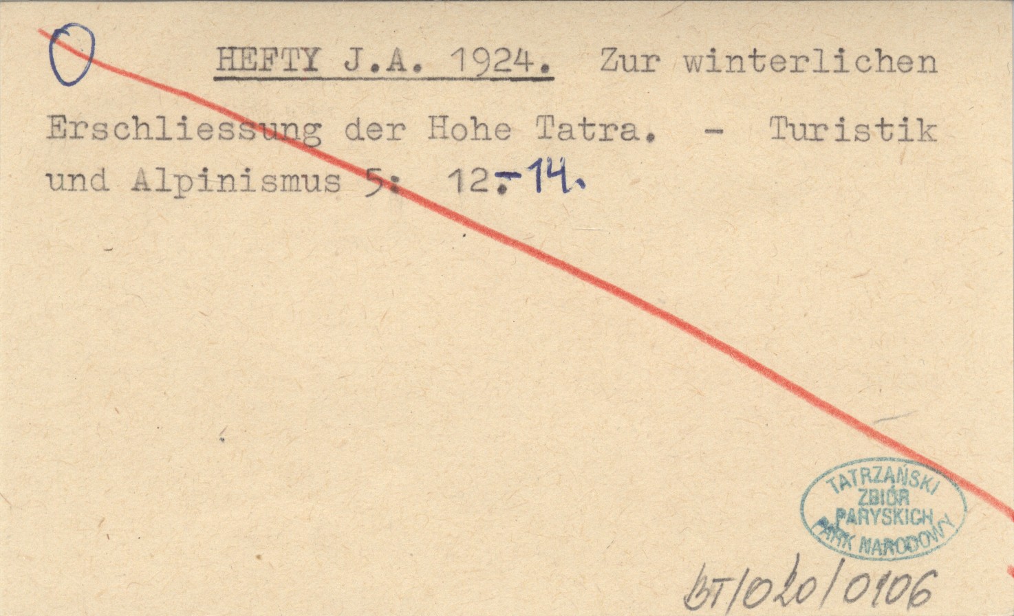 HEFTY J. A. 1924 Zur winterlichen Erschliessung der Hohen Tatra.