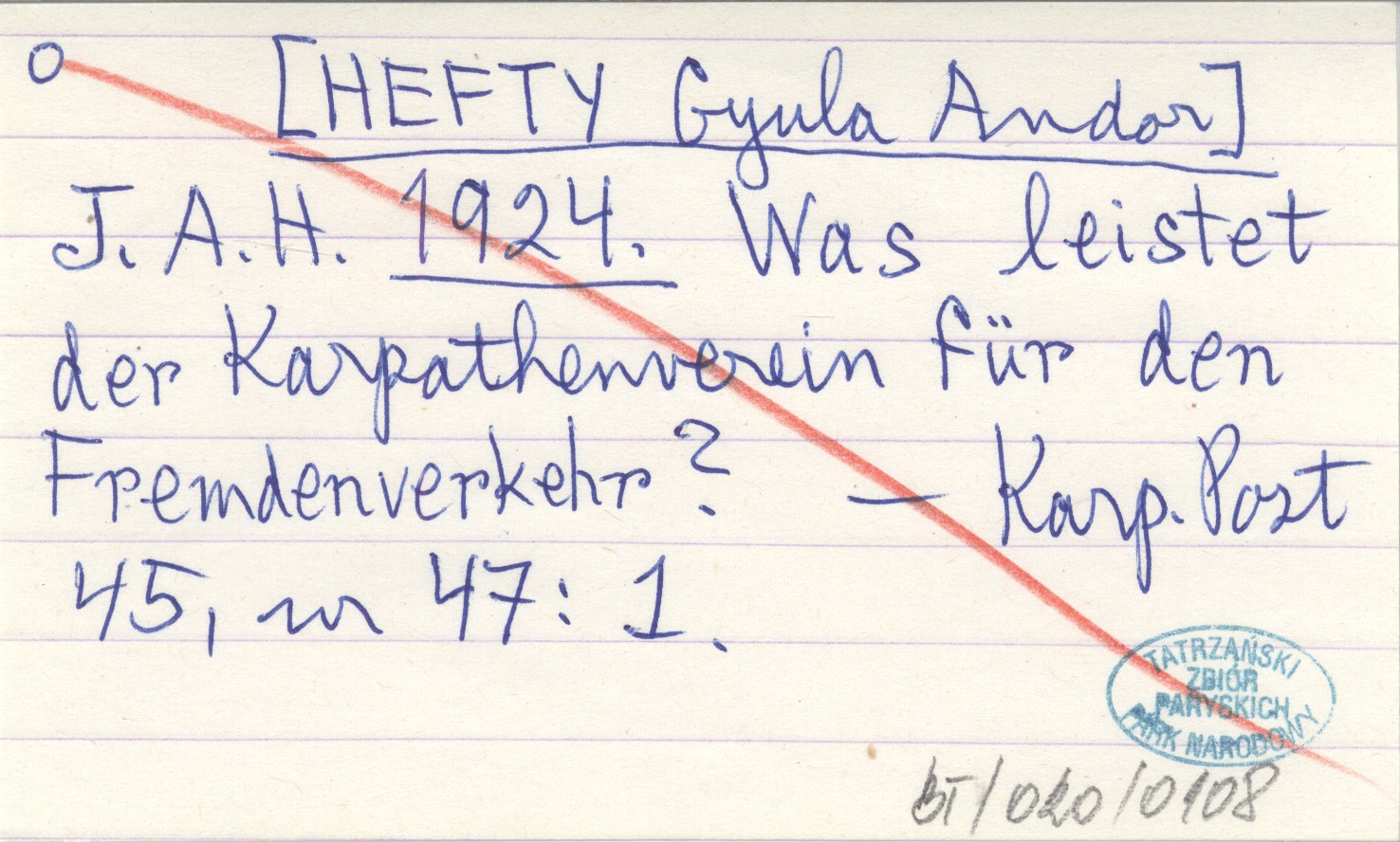J. A. H. [HEFTY Gyula Andor] 1924 Was leistet der Karpathenverein für den Fremdenverkehr?