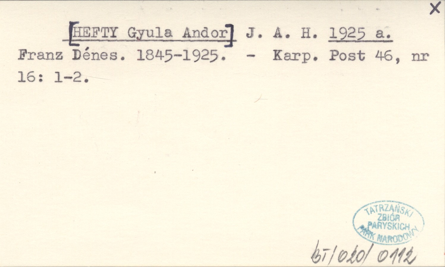 J. A. H. [HEFTY Gyula Andor] 1925 a Franz Dénes. 1845-1925.