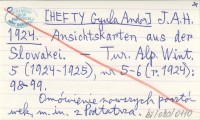 J. A. H. [HEFTY Gyula Andor] 1924 Ansichtskarten aus der Slowakei.
