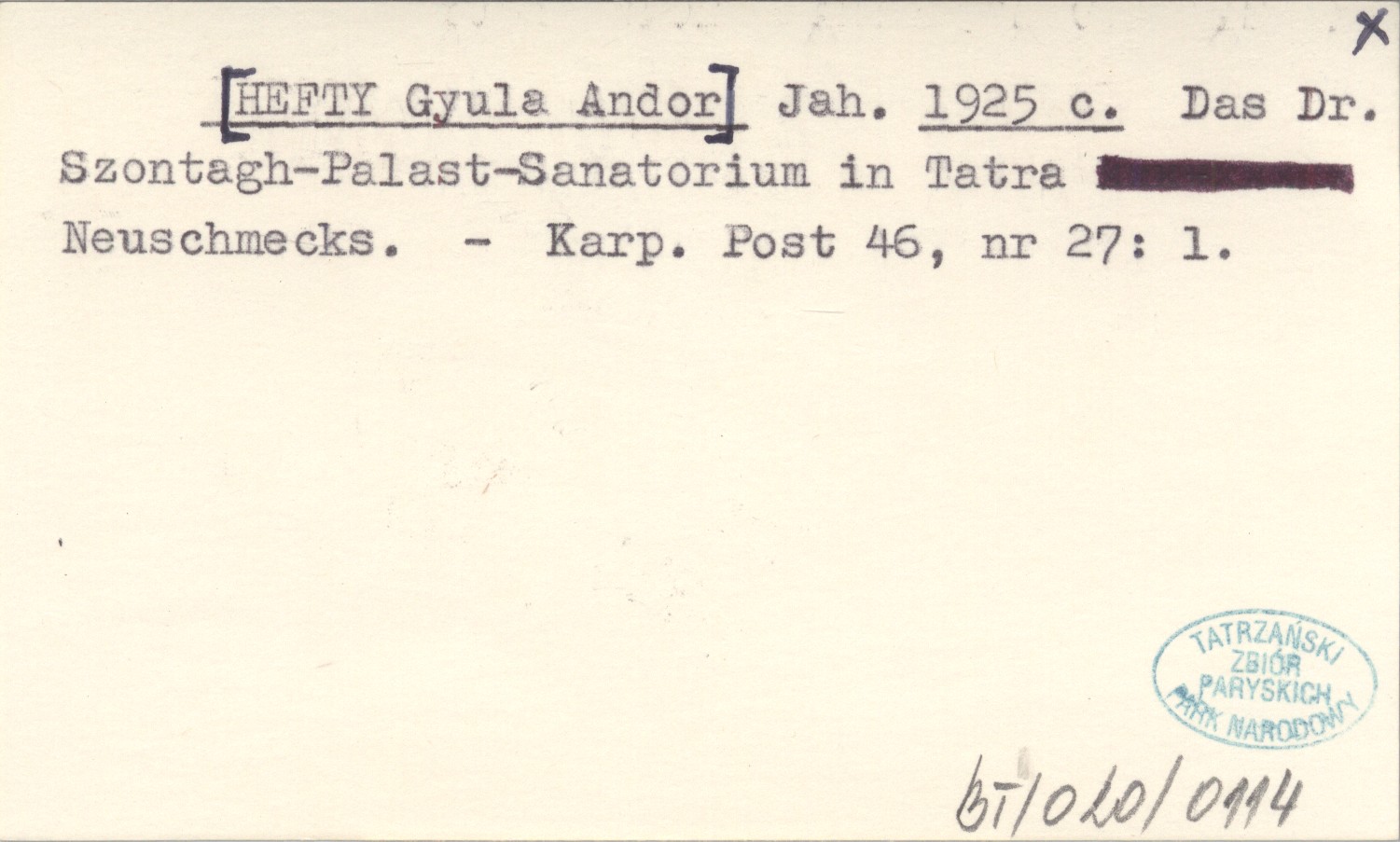 Jah. [HEFTY Gyula Andor] 1925 c Das Dr. Szontagh-Palast-Sanatorium in Tatra Neuschmecks.