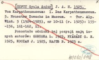 J. A. H. [HEFTY Gyula Andor] 1925 Vom Karpathenmuseum: 1. Das Karpathenmuseum. 5. Neuster Zuwachs im Museum.