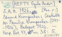 J. A. H. [HEFTY Gyula Andor] 1926 [Rec. o:] Edmund Krompecher: Geschichte der Familie Krompecher (1341-1926), Budapest 1926.