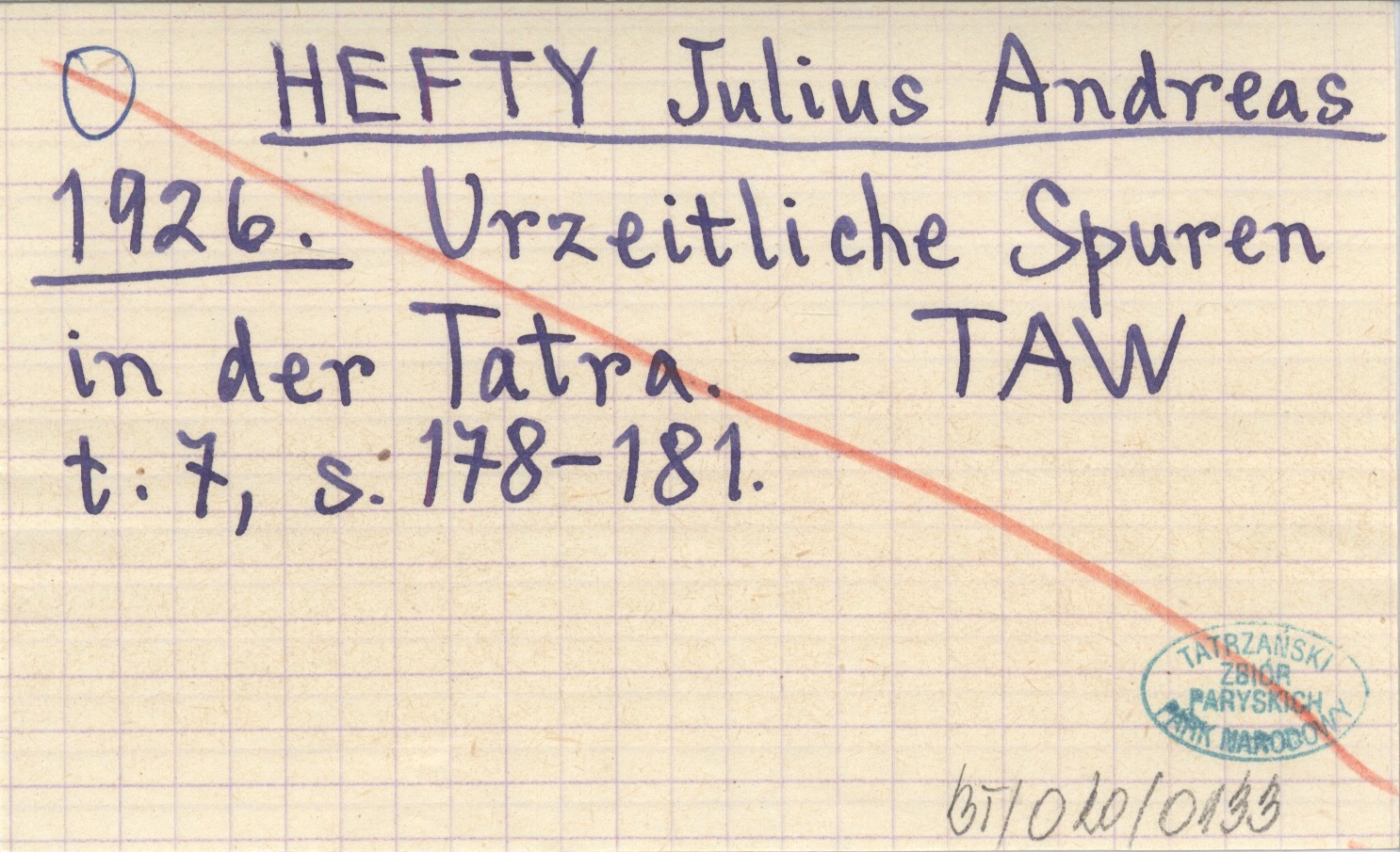 HEFTY Julius Andreas 1926 Urzeitliche Spuren in der Tatra.