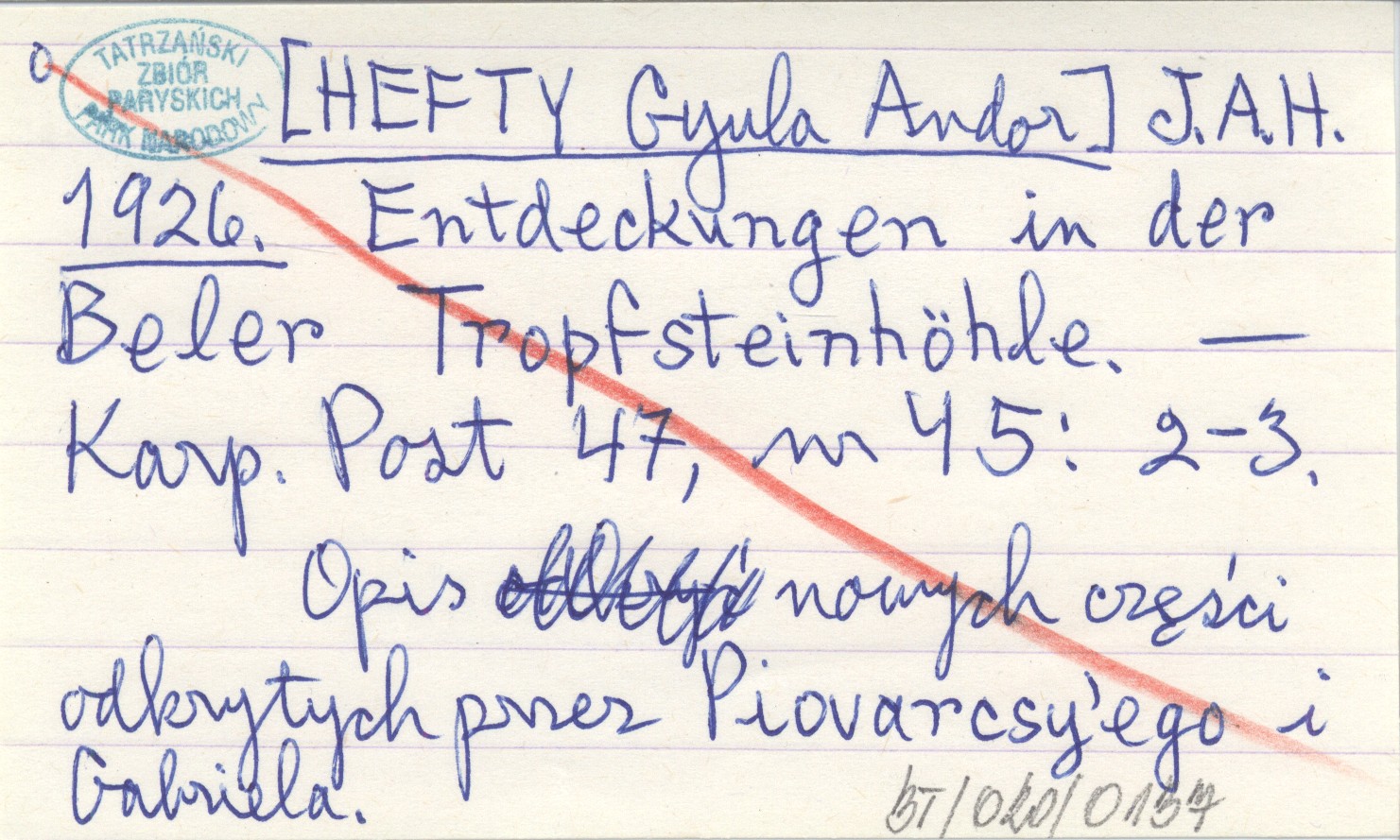 J. A. H. [HEFTY Gyula Andor] 1926 Entdeckungen in der Beler Tropfsteinhöhle.