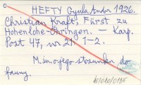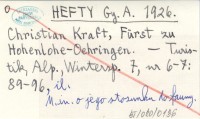 HEFTY Gy. A. 1926 Christian Kraft, Fürst zu Hohenlohe-Oehringen.