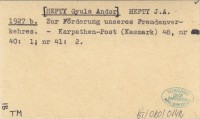 HEFTY J. A. [HEFTY Gyula Andor] 1927 b Zur Förderung unseres Fremdenverkehres.