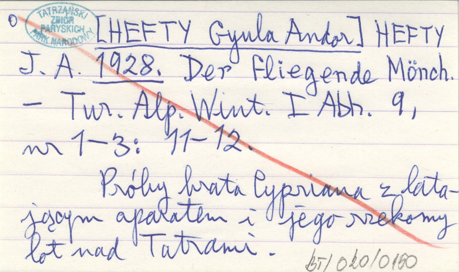 Turistik, Alpinismus und Wintersport I Abh., 9, nr 1-3: 11-12. Próby brata Cypriana z latającym aparatem i jego rzekomy lot nad Tatrami.