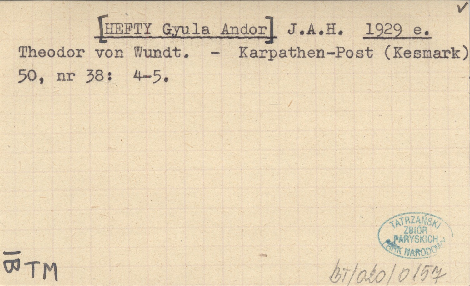J. A. H. [HEFTY Gyula Andor] 1929 e Theodor von Wundt.