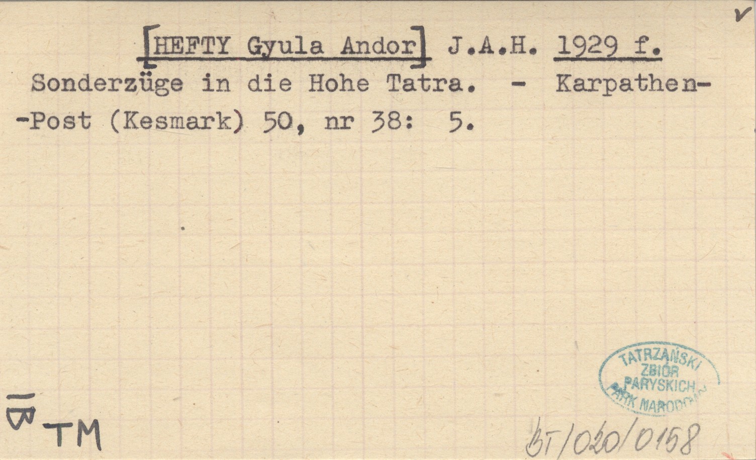 J. A. H. [HEFTY Gyula Andor] 1929 f Sonderzüge in die Hohe Tatra.