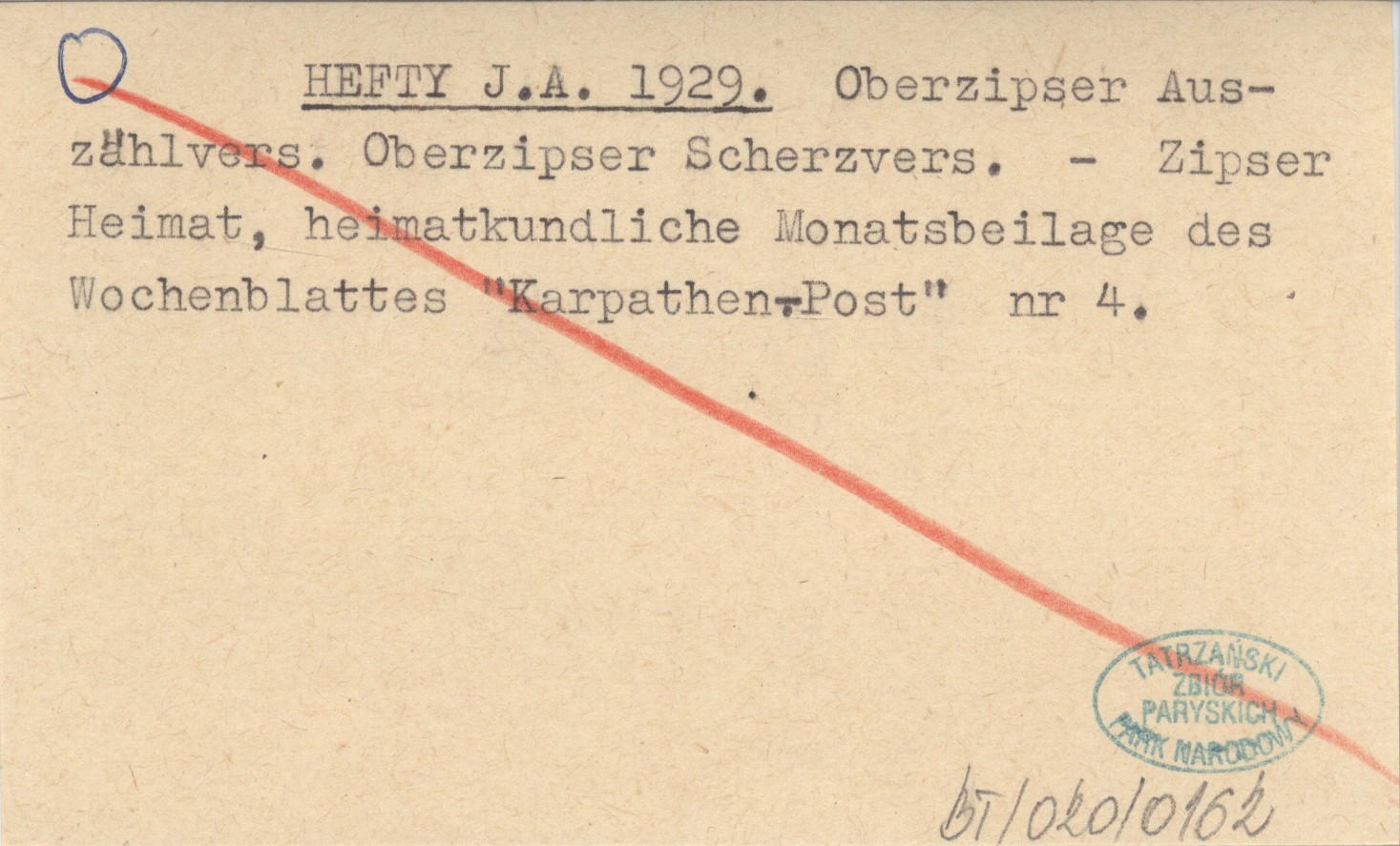 HEFTY J. A. 1929 Oberzipser Auszählvers, Oberzipser Scherzvers.