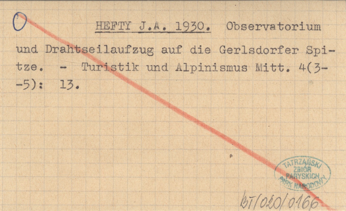 HEFTY J. A. 1930 Observatorium und Drahtseilaufzug auf die Gerlsdorfer Spitze.