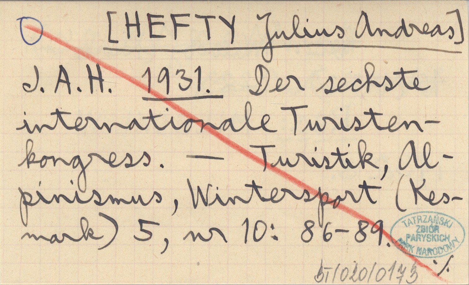 J. A. H. [HEFTY Julius Andreas] 1931 Der sechste internationale Turistenkongress.