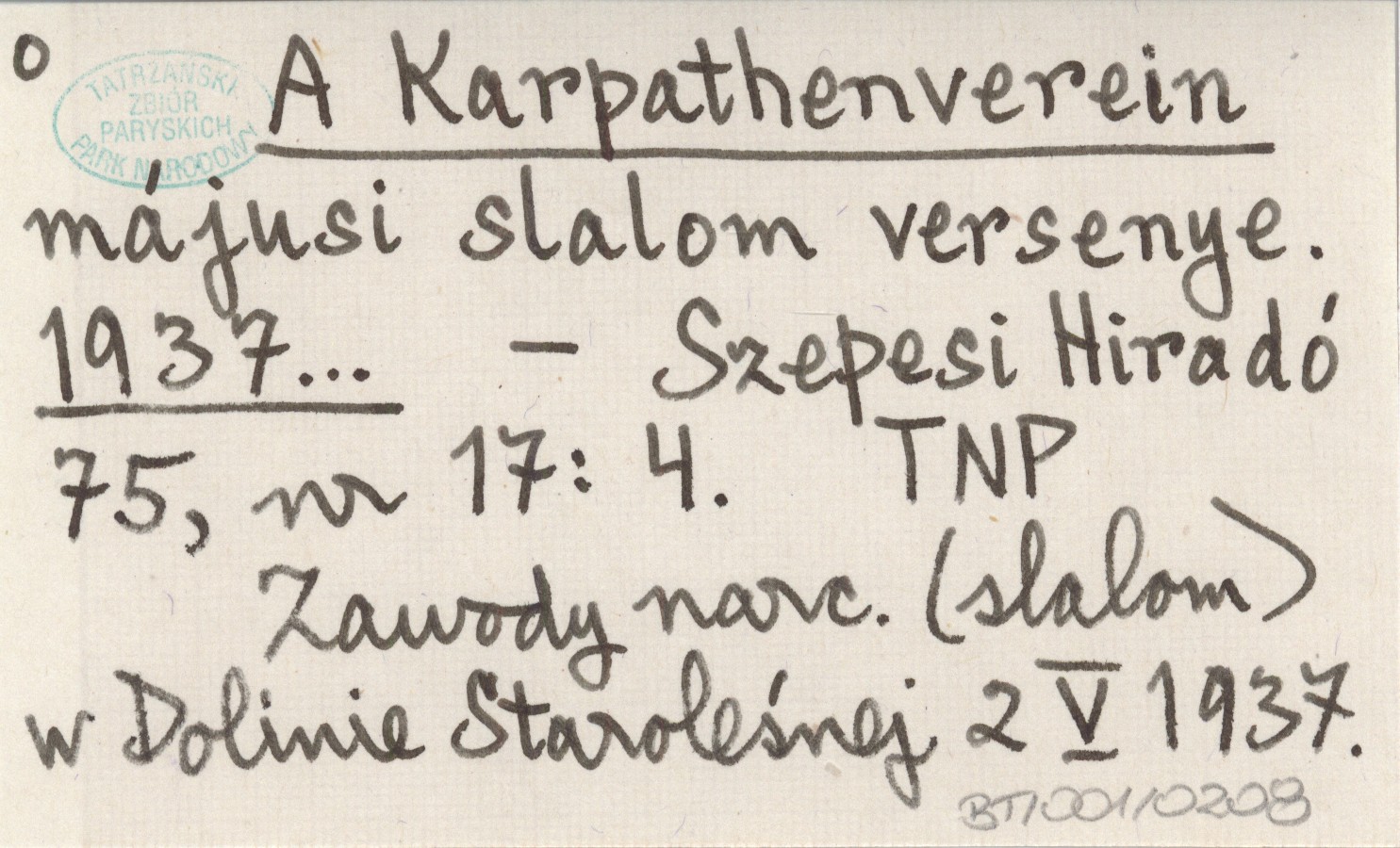 Szepesi Hiradó, 75, nr 17: 4. Zawody narciarskie (slalom) w Dolinie Staroleśnej 2 V 1937.