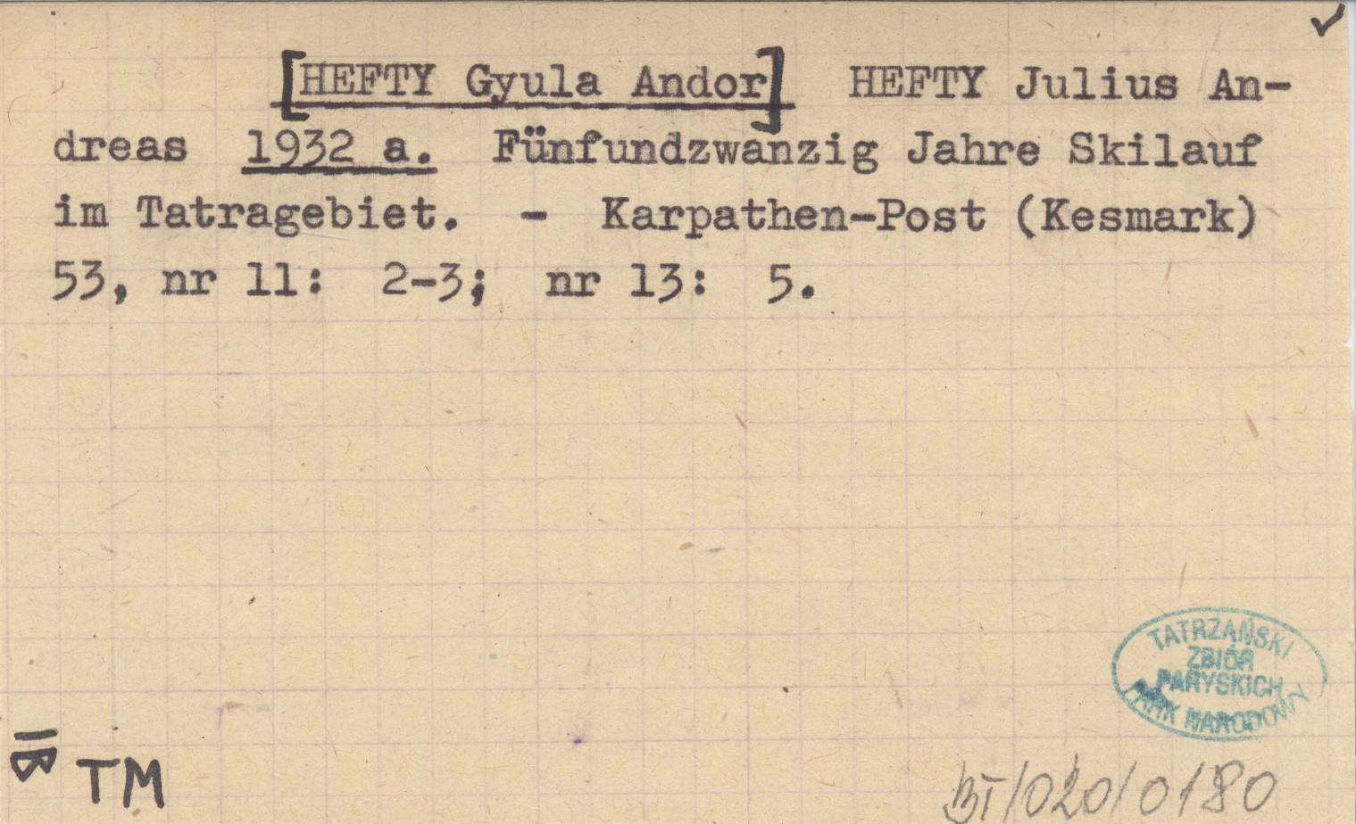 Karpathen-Post (Kesmark) , 53, nr 11: 2-3; nr 13: 5.