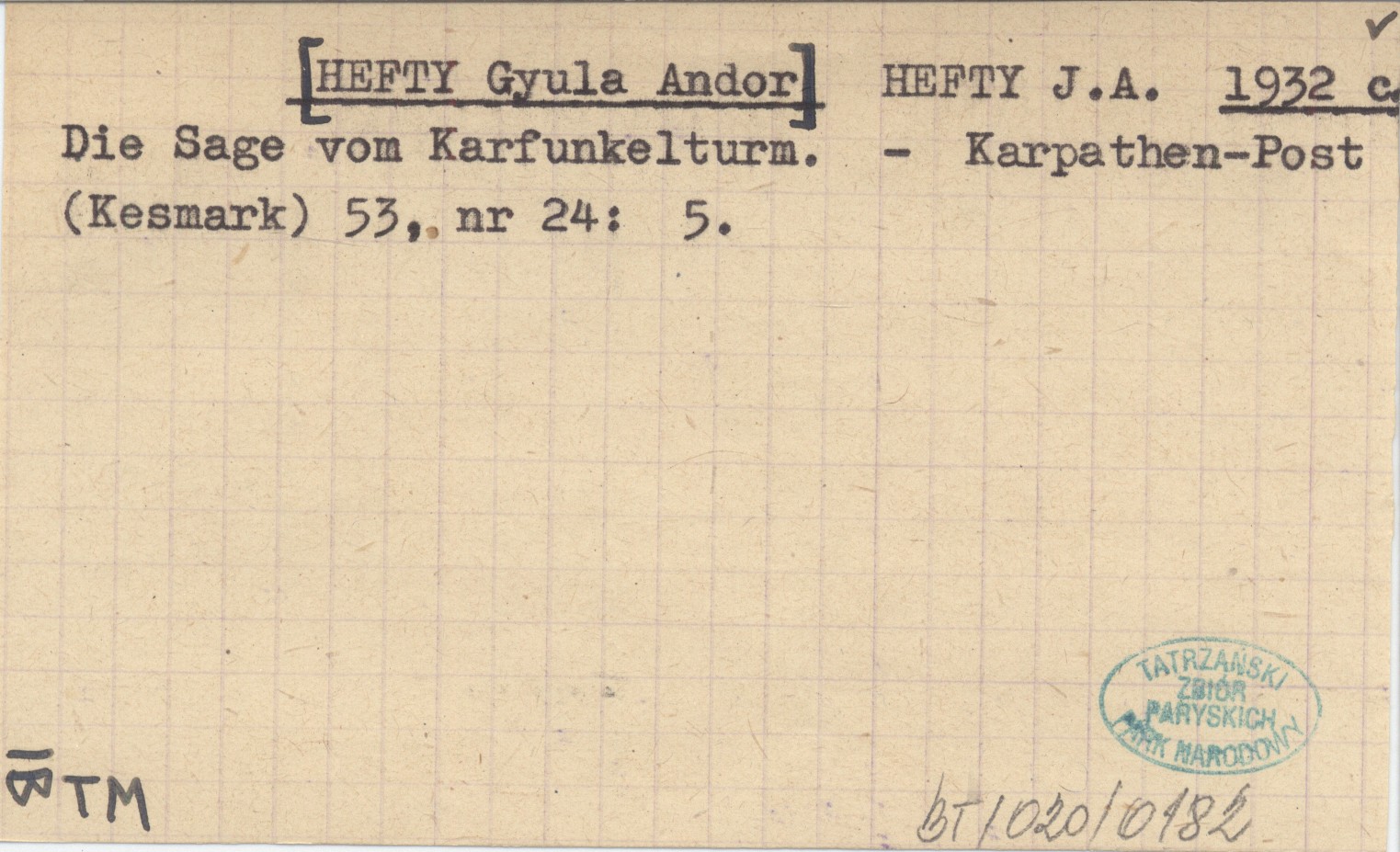 HEFTY J. A. [HEFTY Gyula Andor] 1932 c Die Sage vom Karfunkelturm.