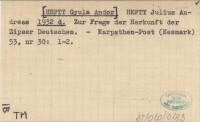 HEFTY Julius Andreas [HEFTY Gyula Andor] 1932 d Zur Frage der Herkunft der Zipser Deutschen.